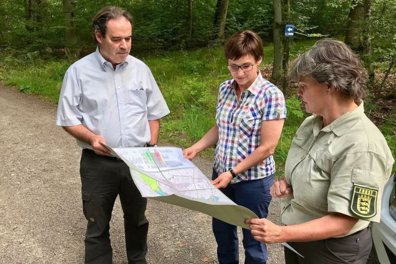 Borkenkäfer vermehrt sich bei Hitze und Trockenheit „Das aktuelle Wetter ist insbesondere für die Nadelbäume problematisch“, verdeutlichte Inge Hormel, „aufgrund des Wassermangels und der Hitze herrschen derzeit optimale Bedingungen für die Massenvermehrung von Borkenkäfern. Dieser befällt vor allem Fichten, welche dann kaum noch zu retten sind.“ Die natürliche Abwehr der Fichten, die Borkenkäfer im Harz zu ertränken, funktioniere derzeit nicht mehr. „Wir haben hier im Landkreis bereits in den ersten sieben Monaten dieses Jahres so viel Borkenkäferholz wie im gesamten Jahr 2018 eingeschlagen“. Neben der Fichte sei vor allem im nördlichen Landkreisteil auch die Tanne durch Hitze und Borkenkäferbefall stark geschädigt. „Seit dem Frühjahr 2018 sind wir Forstleute permanent damit beschäftigt, befallene Bäume aus dem Wald zu nehmen und noch stehende Bestände Bäume auf Neubefall zu kontrollieren“, stellte Inge Hormel dar. Während bis jetzt nur Nadelbäume die Problemkinder waren, seien nun auch zunehmend Laubbäume wie die Buche von der Trockenheit betroffen. Dies betrachten die Forstleute mit Sorge, da die Buche in unseren Böblinger Wäldern von Natur aus die dominierende und über Jahrhunderte an die standörtlichen Bedingungen am besten angepasste Baumart ist. „Die Forstwirtschaft ist auf lange Zeiträume angelegt“, weiß Sabine Kurtz. Daher halte sie es für „wichtig, dass wir die Situation seriös untersuchen und danach mit Bedacht handeln“. Aktionismus im Wald hält sie jetzt für fehl am Platz. Mischwälder sind stabil Der Wald ist immer auch ein Spiegel seiner Zeit“, erläuterte Reinhold Kratzer. „Nach dem Zweiten Weltkrieg z.B. wurde viel Bauholz zum Wiederaufbau der zerstörten Städte benötigt. Damals wurden die zerstörten Wälder insbesondere mit Fichten wieder aufgeforstet. Das Pflanzen von schnell wachsenden Fichten, die ideales Bauholz liefern, war damals nur logisch. Man stand unter Zeitdruck und der Holzbedarf war groß.“ Diese Baumart hat aber nur flache Wurzeln und ist anfällig für den Borkenkäfer. Nach dem Sturm Lothar Ende des Jahres 1999, der im Landkreis Böblingen einen Schaden von über einer Million Festmeter Holz verursachte, nutzten die Forstleute die Gelegenheit, um den Wald breiter aufzustellen. Denn, so der Kreisforstamtsleiter, „ein gemischter Wald, der auf vielen verschiedenen Füßen steht, ist sowohl ökologisch als auch ökonomisch genau das Richtige. Dadurch wird der Wald stabil und entwickelt eine eigene Regenerationsfähigkeit.“ Holz speichert CO2 Inge Hormel erklärte auch, wie wichtig der Wald für die Eindämmung des Klimawandels ist: „Wachsende Bäume binden sehr viel CO2. Auch im verbauten Holz bleibt das CO2 lange gebunden. Verrottet das Holz, entweicht das CO2 jedoch wieder“. Daher sei es wünschenswert, dass immer neue Bäume nachwachsen und ein Wald aus mehreren Generationen bestehe. Junger Wald entstehe von alleine, durch sogenannte Naturverjüngung. Naturverjüngung statt Pflanzungen Das Pflanzen neuer Bäume sei in der hiesigen, dicht besiedelten Landschaft eher die Ausnahme. „Wir im Landkreis Böblingen setzen auf das Konzept der naturnahen Waldwirtschaft mit Mischwäldern aus überwiegend Naturverjüngung.“ Sabine Kurtz hält diesen Weg für richtig. Zumal Reinhold Kratzer darauf hinweist, dass bisher noch nicht erforscht sei, welche Baumarten wirklich klimatolerant seien. Erste Erfolge seien mit der Douglasie zu beobachten. Die Landtagsvizepräsidentin zeigte sich überzeugt, dass unsere Forstwirtschaft gut aufgestellt ist: „Unsere naturnahe Waldwirtschaft, die auf viele Baumarten setzt und in langfristigen Zyklen denkt, ist der Schlüssel zu einem gesunden Wald.“ Waldbesitzarten im Landkreis Böblingen Im Landkreis Böblingen sind ungefähr 35% der Fläche bewaldet. Unser Wald befindet sich zu drei Vierteln im Besitz der Gemeinden und Städte. Rund 20% gehören dem Staat und nur 5% des Waldes sind in privater Hand. Der Wald ist bei uns überwiegend ein Laub- und Mischwald. Während im Norden des Landkreises mit 40% Nadelholz noch mehr Nadelbäume wachsen als im Rest des Kreises, stehen in den Wäldern des gesamten Landkreises Böblingen ca. 70% Laubbäume 30% Nadelbäumen gegenüber.