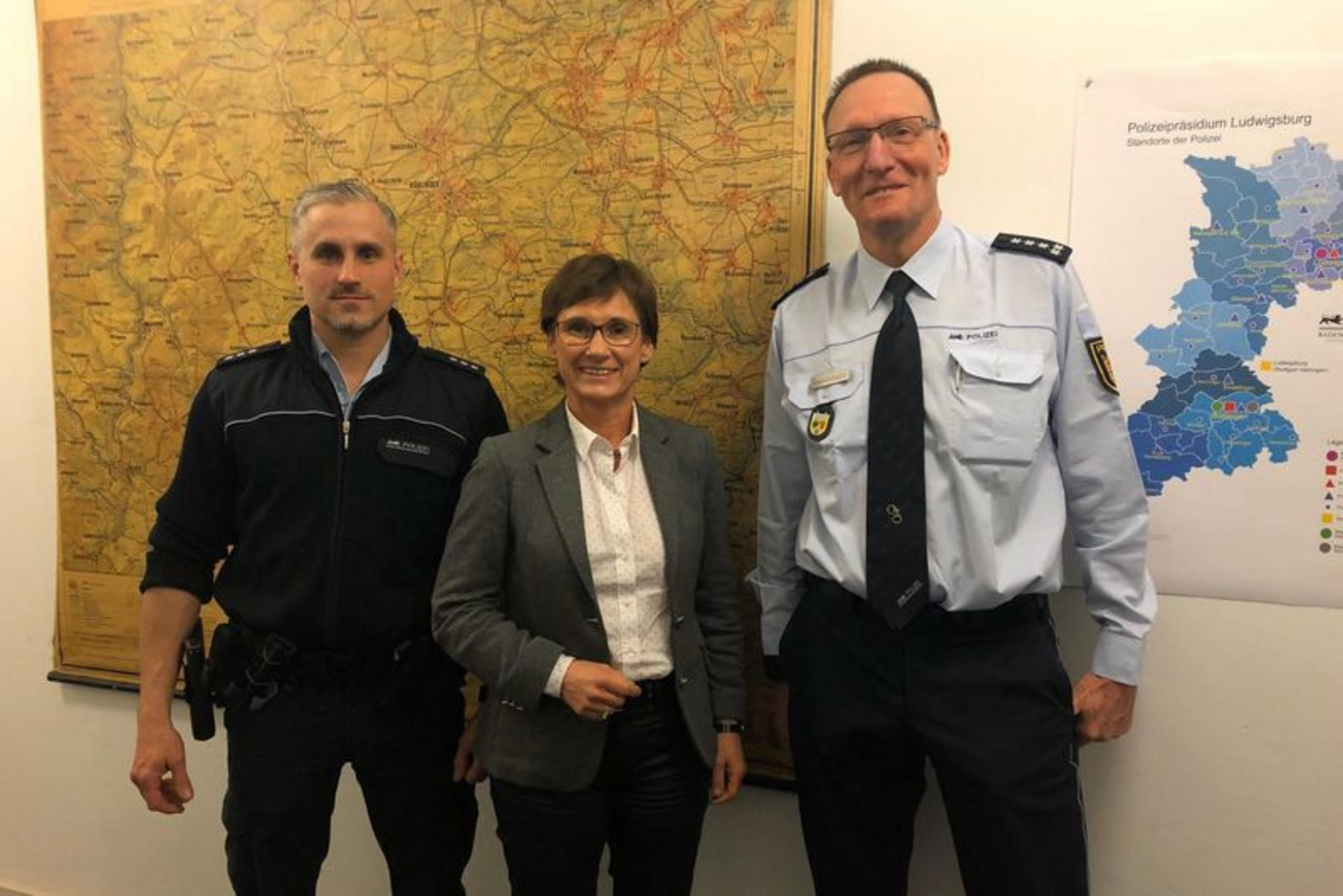 Der Einsatz der Bodycams ist an bestimmte rechtliche Voraussetzungen gebunden. Sobald eine Konfliktsituation droht, kann der Polizeibeamte auf Aufnahme schalten, um so die Situation zu Beweiszwecken zu dokumentieren. Bislang dürfen die Schulterkameras allerdings nur außerhalb von geschlossenen Räumen eingeschaltet werden. "Wir würden es sehr begrüßen, wenn wir die Bodycams auch in Innenräumen nutzen könnten“, so Polizeihauptkommissar Stefan Kahlert von der Herrenberger Polizei. „Wenn wir beispielweise zu Familienstreitigkeiten gerufen werden und an der Tür klingeln, wissen wir oft nicht, was uns dahinter erwartet". Sabine Kurtz hat gute Nachrichten: vor Weihnachten habe man sich nach langen Verhandlungen mit dem grünen Koalitionspartner darauf geeinigt, dass die Schulterkameras künftig auch bei Streitigkeiten in Wohnungen oder Diskotheken eingesetzt werden dürfen. Das Polizeigesetz solle dieses Jahr entsprechend geändert werden. Angesprochen auf die neue Organisationsstruktur der Polizei mit dem Präsidium in Ludwigsburg sagte Revierleiter Klaus Feuersänger gegenüber der Landtagsabgeordneten: "Als Beamte respektieren wir die Entscheidungen der Politik selbstverständlich. Die Fahrten nach Ludwigsburg, manchmal drei bis vier Mal pro Woche, sind natürlich zeitaufwändig. Aber wenn wir Fahrgemeinschaften mit den Kollegen aus Böblingen und Sindelfingen bilden, können wir unterwegs schon das Eine oder Andere informell klären.“ Mit 65 Personalstellen sei der Standort Herrenberg zwar das kleinste Revier im Einzugsbereich des Ludwigsburger Polizeipräsidiums, aber mit den Polizeiposten in Gärtringen und Gäufelden zuständig für zwei Autobahnen und rund 80.000 Einwohner. Das Kriminalitätsaufkommen sei hier im Vergleich zu anderen Städten gering, erklärt Klaus Feuersänger, der zudem auf eine hohe Aufklärungsquote verweisen kann. Auf der nächtlichen Streifenfahrt erlebte Sabine Kurtz ein eher beschauliches Herrenberg. Neben verschiedenen Alkohol- und Fahrzeugkontrollen kam es zu keinen besonderen Vorkommnissen. „Bei dem nasskalten, nebligen Wetter jagt man ja keinen Hund vor die Tür", so Kahlert angesichts der leeren Straßen. Auch im Einsatz zeigten sich die Polizeibeamten freundlich und hilfsbereit. „Unsere Polizisten leben das Leitbild ‚Freund und Helfer‘“, ist die Landtagsvizepräsidentin überzeugt. Und: „Ich bewundere es sehr, dass sich viele neben ihrem anspruchsvollen Schichtdienst in ihrer Freizeit zusätzlich ehrenamtlich engagieren, sei es in den Gemeinderäten, im Sport oder in anderen Vereinen.“