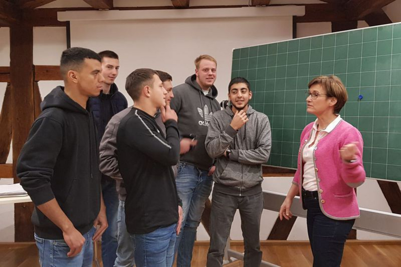 Im Gemeinschaftskundeunterricht debattierte die Vizepräsidentin des Landtags mit den Jugendlichen über politische Themen, die Baden-Württemberg und Deutschland bewegen. Gemeinschaftskunde gehört neben Wirtschaftskunde, Deutsch und Religion zu den allgemeinbildenden Fächern, die an der Seehaus-Schule jeden Freitag unterrichtet werden. Politische Bildung ist dabei fester Bestandteil. Fragen nach dem Verhältnis von Regierung und Parlament und nach der Rolle der Parteien interessierten die jungen Männer besonders. Am Beispiel des Videos von Youtuber Rezo kamen die Jugendlichen auch auf die Bedeutung von traditionellen wie sozialen Medien zu sprechen und diskutierten inhaltliche Fragen der Klimapolitik. Einen ganzen Tag konzentriert zuhören, mitschreiben und sich im Unterricht einbringen, sei für einige der aktuell zwölf jungen Männer eine echte Herausforderung, so Andreas Ziegner, Leiter der Seehaus-Schule. Schließlich wollen auch sie im Juli erfolgreich ihr erstes Lehrjahr abschließen und sich dann in der Freiheit für ihren weiteren beruflichen Weg bewerben. „Ich wünsche den Jugendlichen, dass sie an ihren Zielen dranbleiben und den Schritt in ein selbstständiges Leben schaffen“, so Sabine Kurtz am Ende der Unterrichtsstunde. Für ihre Berufswünsche drücke sie allen die Daumen, sei es als Schreiner, Zimmerer, Gärtner- und Landschaftsbauer oder in der Metallwerkstatt. Diese Ausbildungsmöglichkeiten bietet das Seehaus in seinen vier Ausbildungsbetrieben an. Um auch die politische Bildung fortzusetzen, lud die Landtagsabgeordnete die jungen Männer im Gegenzug zu einem Besuch in den Landtag ein.