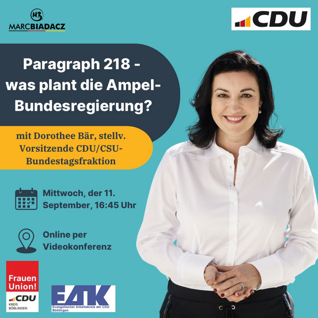 Ampel-Pläne zur Reform des §218: Frauen Union, EAK und Marc Biadacz laden zur online-Diskussion ein