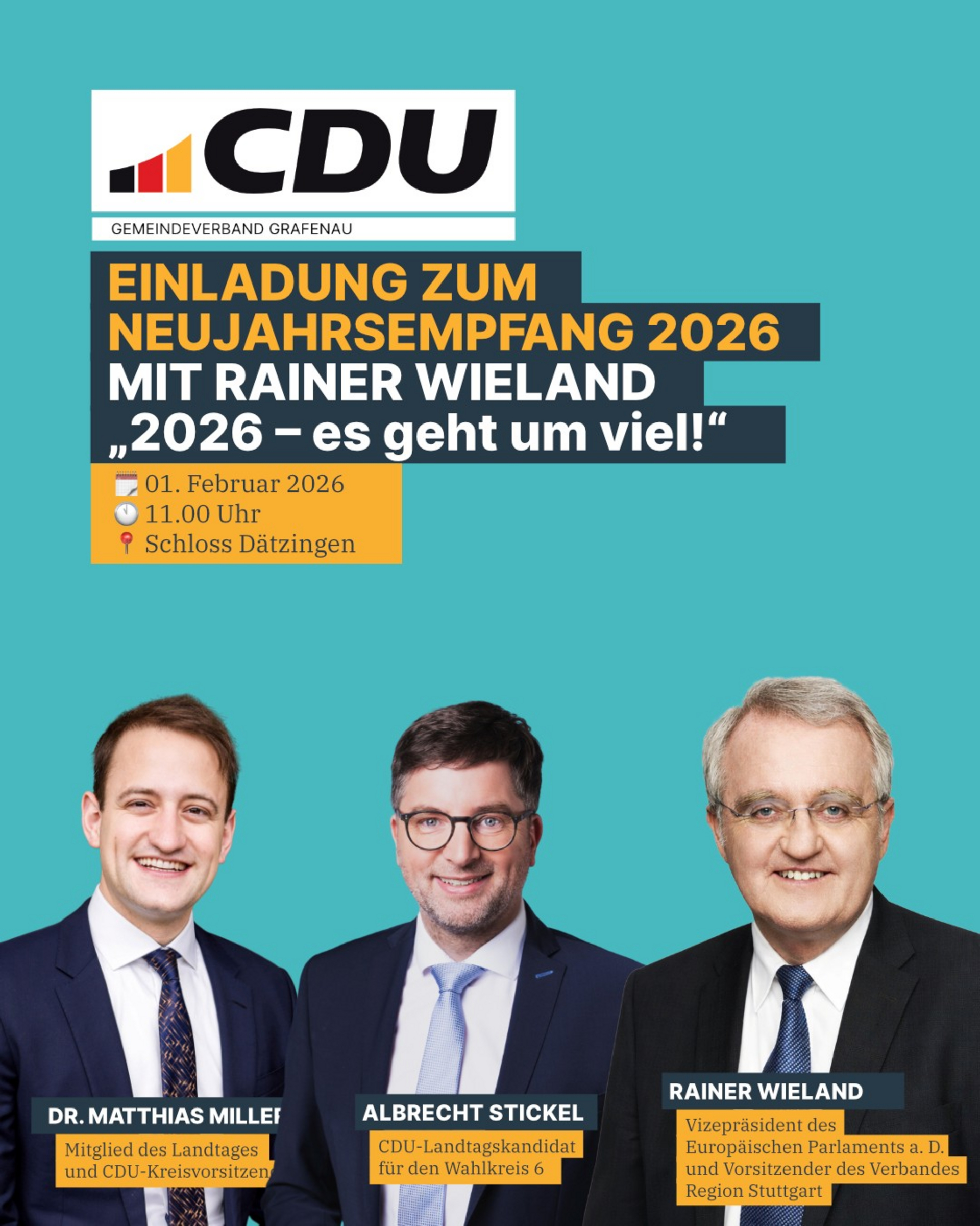 Neujahrsempfang der CDU Grafenau mit Rainer Wieland, Dr. Matthias Miller und Albrecht Stickel